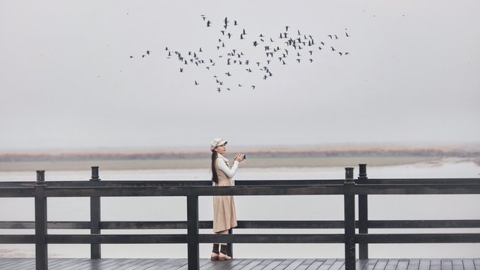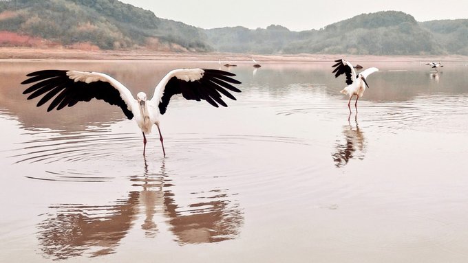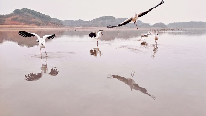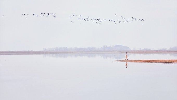 如果你是摄影爱好者,记得带上长焦,推荐大家来朱市湖观鸟点。这里可以走到湖边,最近距离地观鸟,长焦也可以拍到鸟起飞,十分唯美。