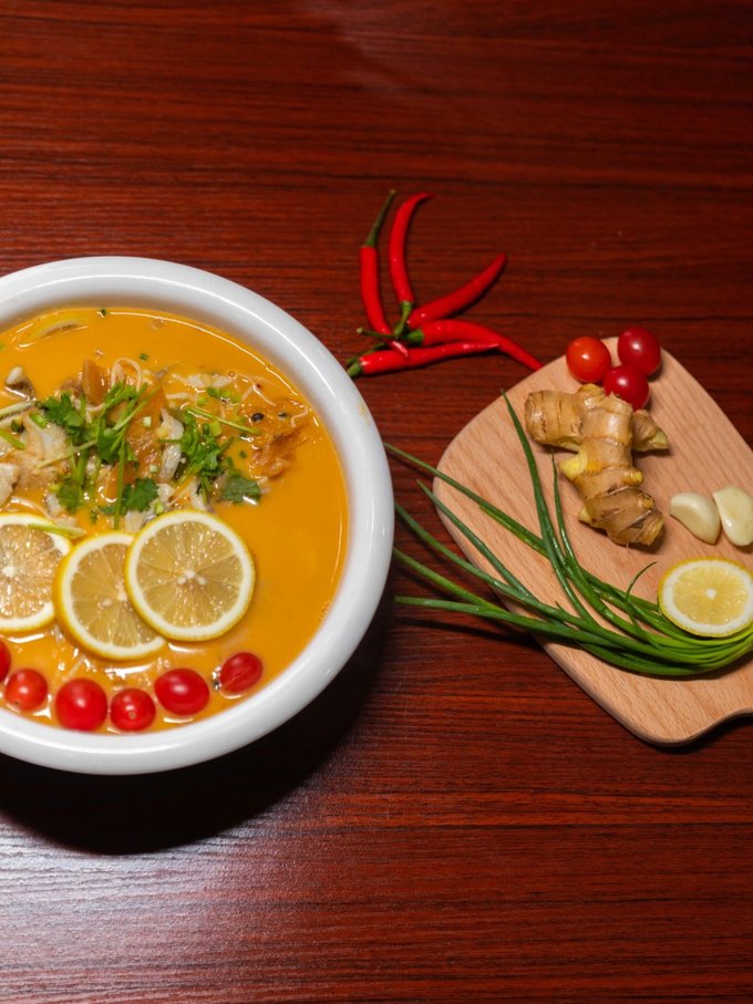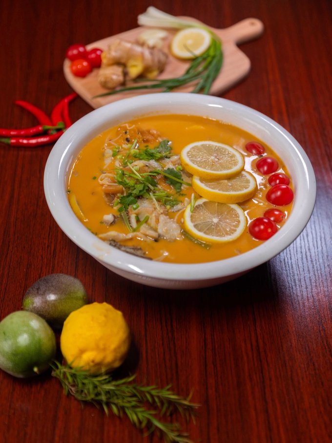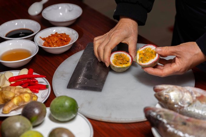 百香果酸鱼汤主材是 德安 当地产的百香果和鲈鱼,水果现摘,鱼也新鲜,制作工艺也是相当讲究,需要用到各种香料,柠檬等。