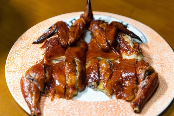 最后,放进炉子中用火慢烤,千万不能心急,要等到有香味慢慢飘出来。有经验的厨师严格把控着火候,直到出炉,切块,上桌。葵花鸡真的太好吃了,香香脆脆,肥而不腻,一定要趁热吃。