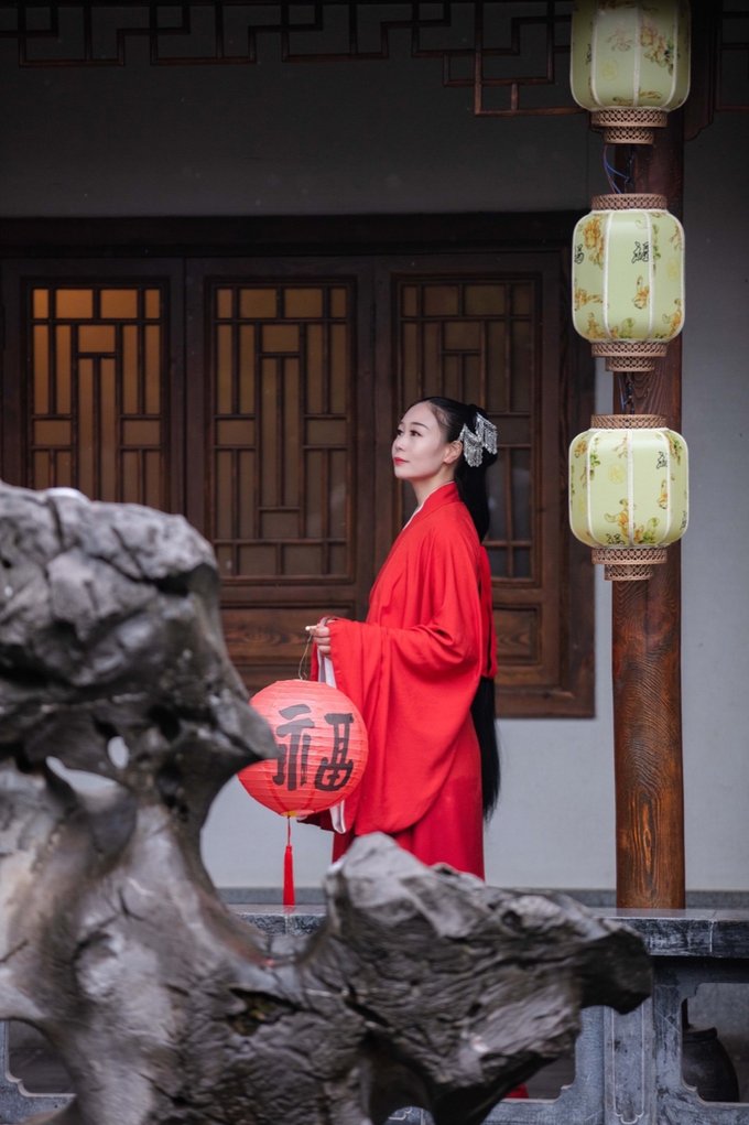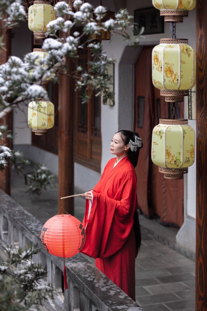 瑞雪兆丰年 ,这里也有着浓浓的年味,红色的汉服,红色的灯盏,相当应景。江洲大院还可以吃到 九江 特色菜,还可以预定全鱼宴,寓意年年有余。