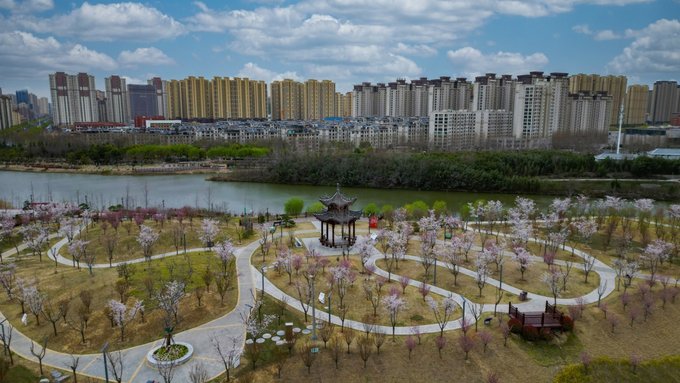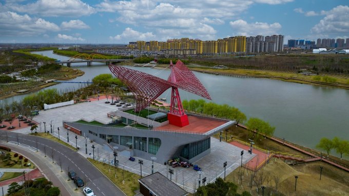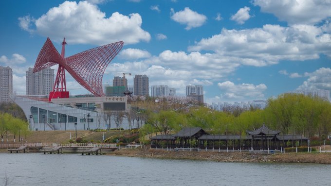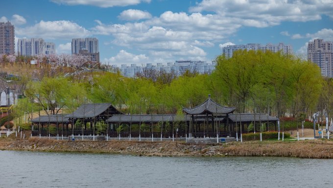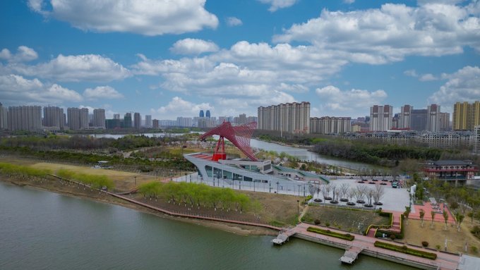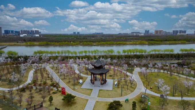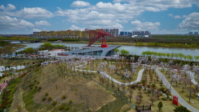 这里的堤岸绿化段栽植苗木近一百万株,春天的新汴河景区碧水蓝天,绿草如茵,是了解宿州历史和游玩的好地方。