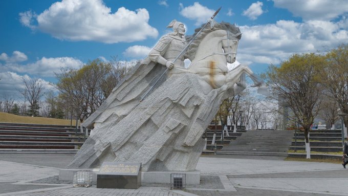 在中轴线上矗立一座陈胜、吴广起义大型浮雕像,外形为火炬形,象征陈胜、吴广点燃第一次农民大起义的熊熊烈火,陈胜右手持剑指向蕲县,左手振臂呼唤起义军,吴广怒目举棒,首冲在前。