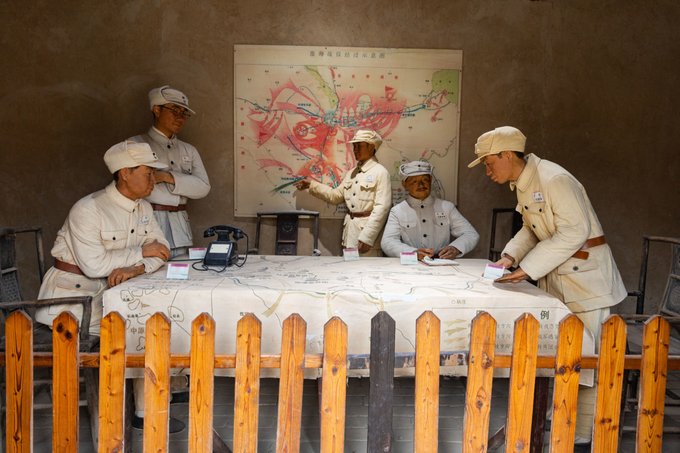 淮海战役五位“总前委”在这里留下了一张弥足珍贵的合影,也是淮海战役总前委刘伯承、陈毅、邓小平、粟裕、谭震林在这场著名战役期间的唯一一次合影!