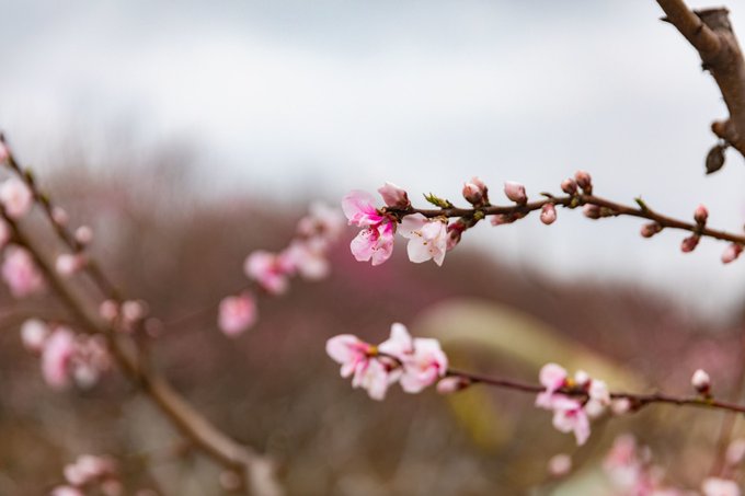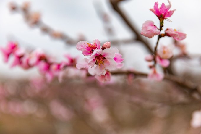 这片桃花开得格外喧闹,密密层层,宛如一片朝霞,桃花粉红粉红的,娇嫩得仿佛吹口气就能化成水。