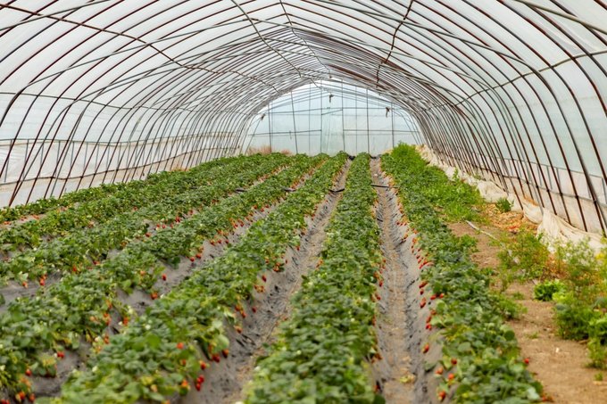 孩子们来这里还能体验到采摘的乐趣,我们来的时候草莓已经可以采摘了。走进草莓园,里面种满了红色的大草莓。