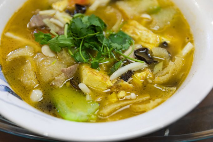 这个薄饼中间是鸡蛋馅的,咬上一口,满口留香。另外,还有味道浓郁的羊肉粉丝汤等等,都是平常家里面都会吃的一些美食,很接地气。