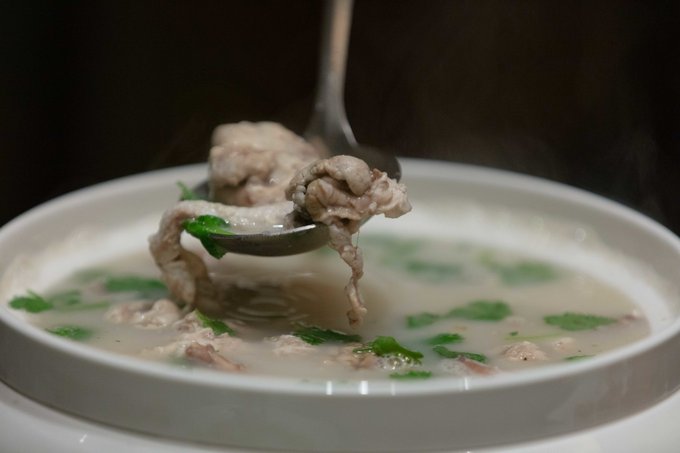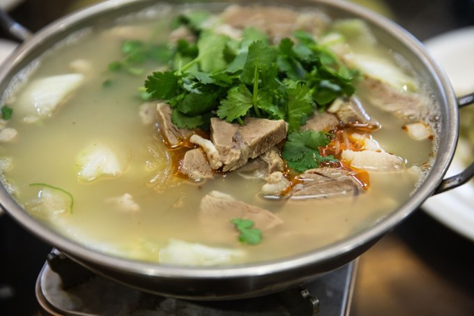 羊汤鲜美,一楼的锅里一直在熬制的高汤,白色的汤底里全是羊骨,这个汤料可是传承了几代人啦,吃的时候加点香菜和胡椒,好棒!