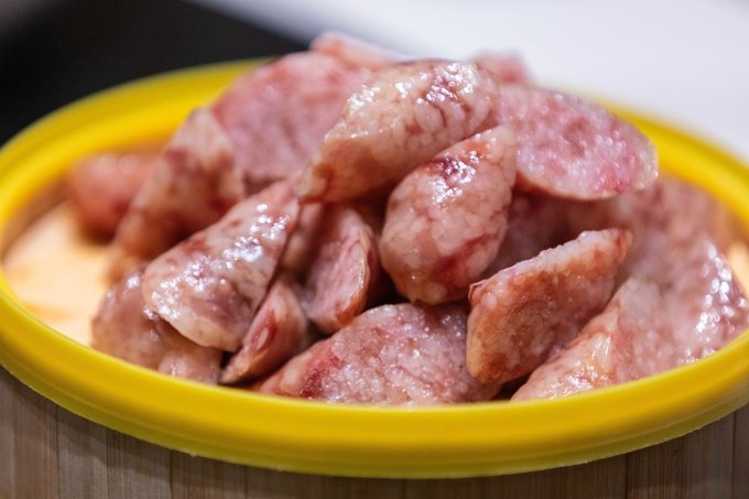 果然,真的是一定膻味都没有,据说徐州人都会专门来萧县吃羊肉。自制的羊油蘸料很香,羊肉米肠完全吃不出任何膻味,软糯好吃。