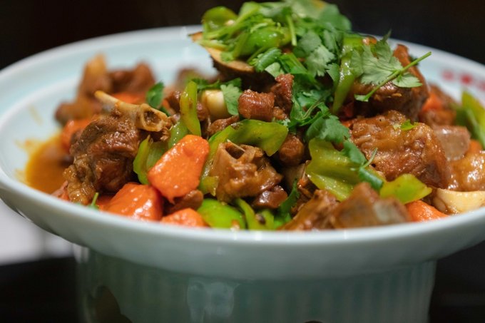 餐馆环境很好,二楼有包厢,我们几个人定的是一个小包厢,我原本以为这里的羊肉我是吃不了啦,没想到当地人说,他们这的羊肉一点膻味都没有。