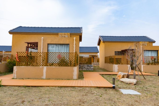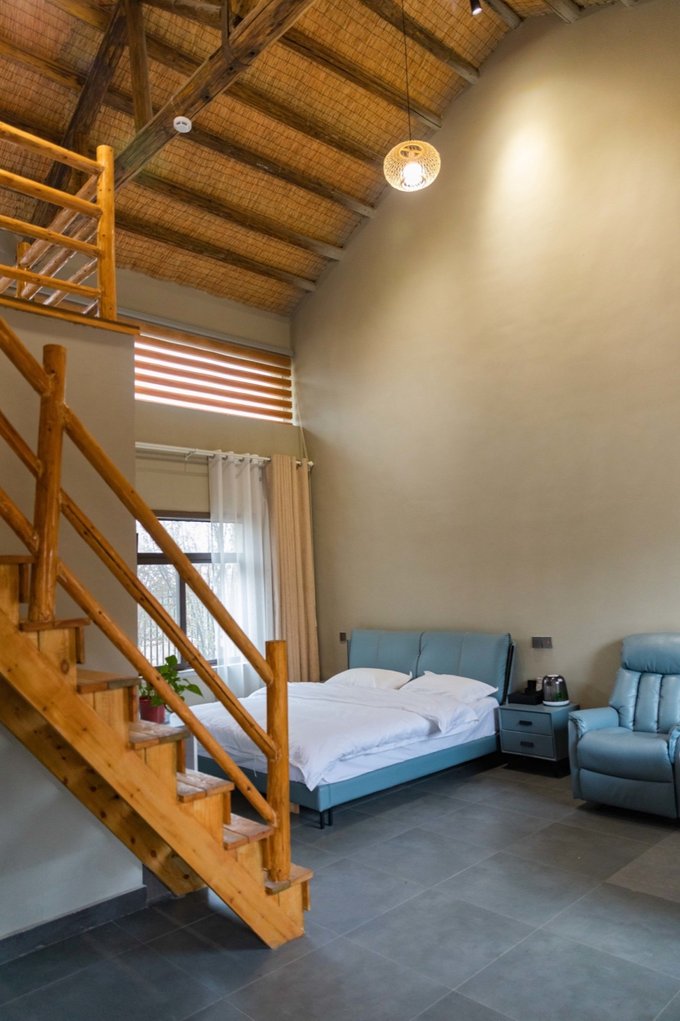 走进内部,你会发现别有洞天。民宿很大,有一处宽敞的公共区域,黄色的主色调,呈现出纯粹与朴实,一栋栋小楼基本都是复式的,很舒适。