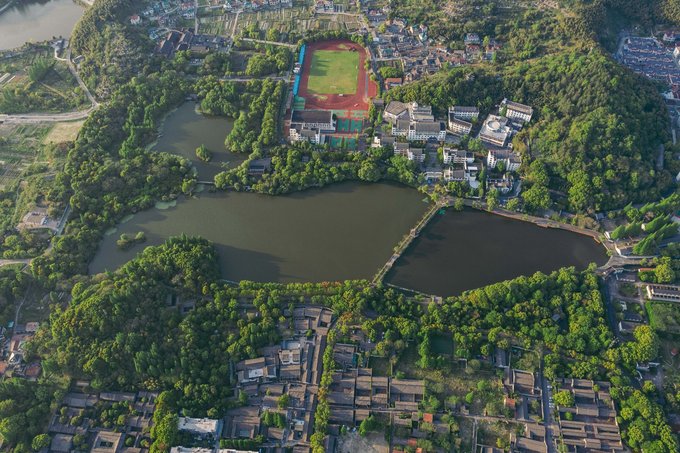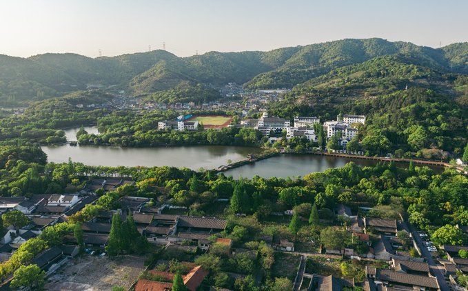 ▼如今的慈城与慈湖(航拍)还保留着旧时大致格局