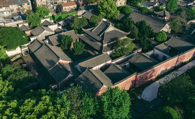 如今,这里是江南地区保存最完整的千年古县城,街区完好,格局井然有序,古迹古建密集,存有丰富的历史记忆和民俗民情。 ▼浙东地区现存最完整文庙:孔庙,它的红色外墙俨然慈城最火打卡地