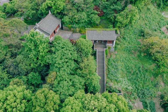 ▼在一片苍葱翠柏中拾级而上,登清道观,览慈城全景