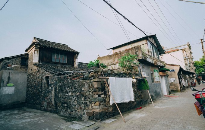 “瓦爿墙”即碎砖墙。 旧时,慈城多大户人家,他们常修缮房屋,每次修缮都会扔弃一些旧砖瓦。老百姓因陋就简,将这些不成体系、七零八碎的旧砖瓦捡回家,垒砌成自家房屋的墙壁。这是一种利用回收的旧砖瓦进行的循环建造,一堵墙可以使用最多达80多种旧砖瓦。 在王澍的书里,你能经常看到他对瓦爿墙的赞美。在这里,老百姓用节约又充满智慧的方式,呈现着碎砖墙的魅力…… ▼一些未改造的民居仍然能看到瓦爿墙的身影