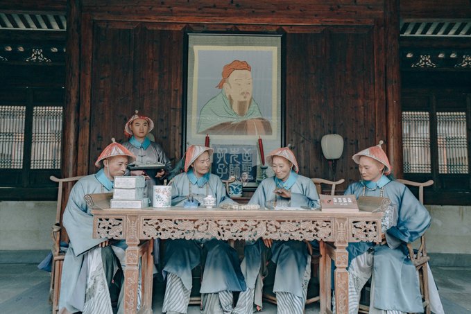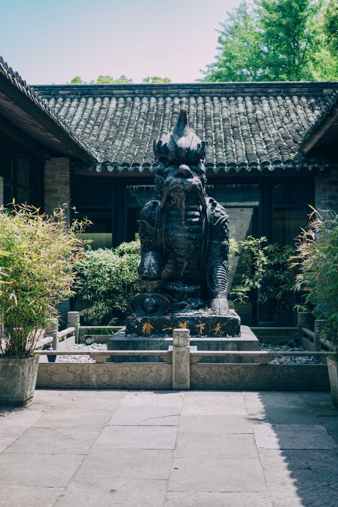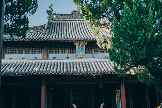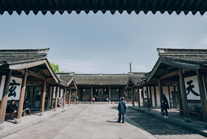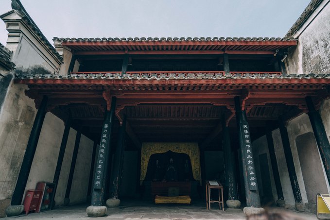 行程中,我特意发信息给一位宁波的老友:这里不似其他江南古镇,没有“小桥流水人家”,横平竖直的布局倒更有北方古镇的气韵,因为孔庙(建于北宋时期,是浙东地区保存最完整的文庙)的存在更使得她多了一分庄严与肃穆。 他说:“对呀,浙东是宋南迁后发展起来的,所以有北方中原地区的建筑风貌,又因对外开埠较早,又有些海派风格……”