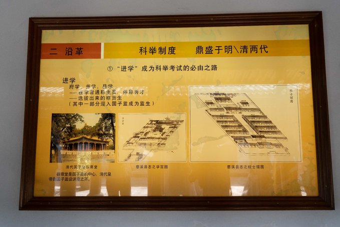 据慈溪县志记载,早在清道光15年也就是公元1835年的时候,由当地乡贤郑廷荣、郑一夔父子出资二万四千两银元兴建,现校士馆是根据清光绪慈溪县志上所记载的图纸在原来的基础上重建。