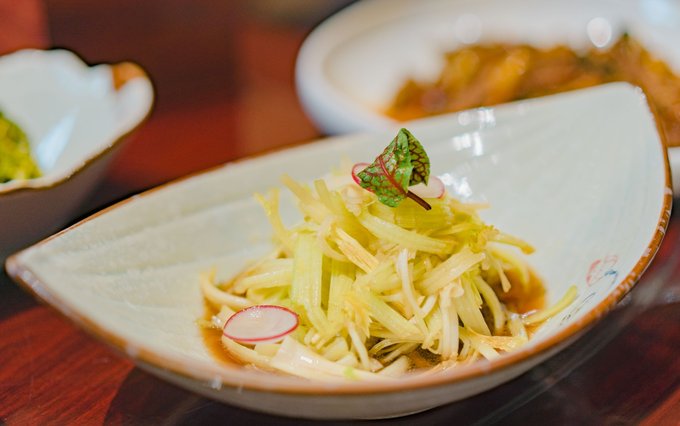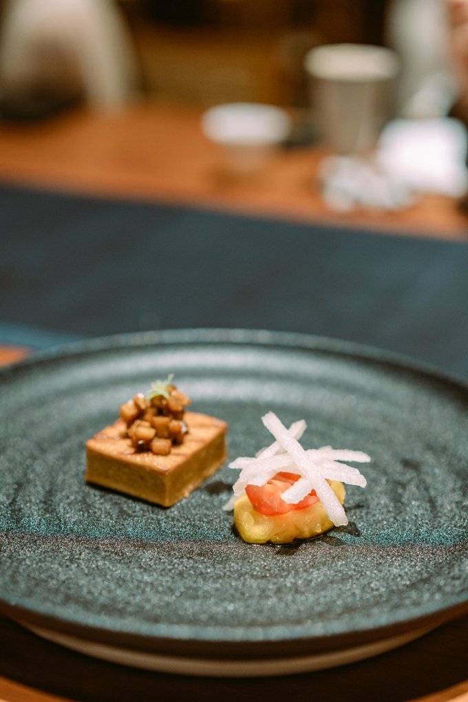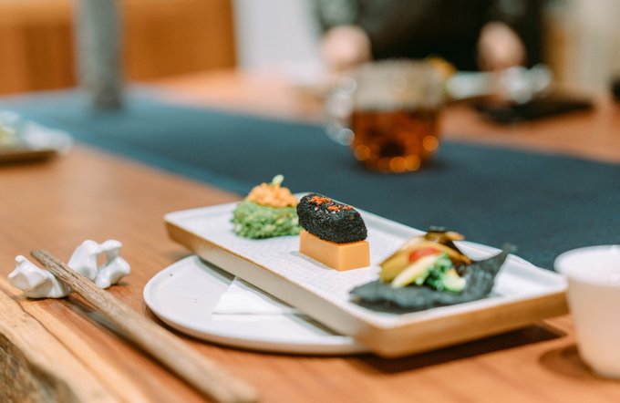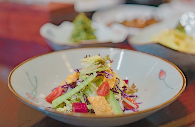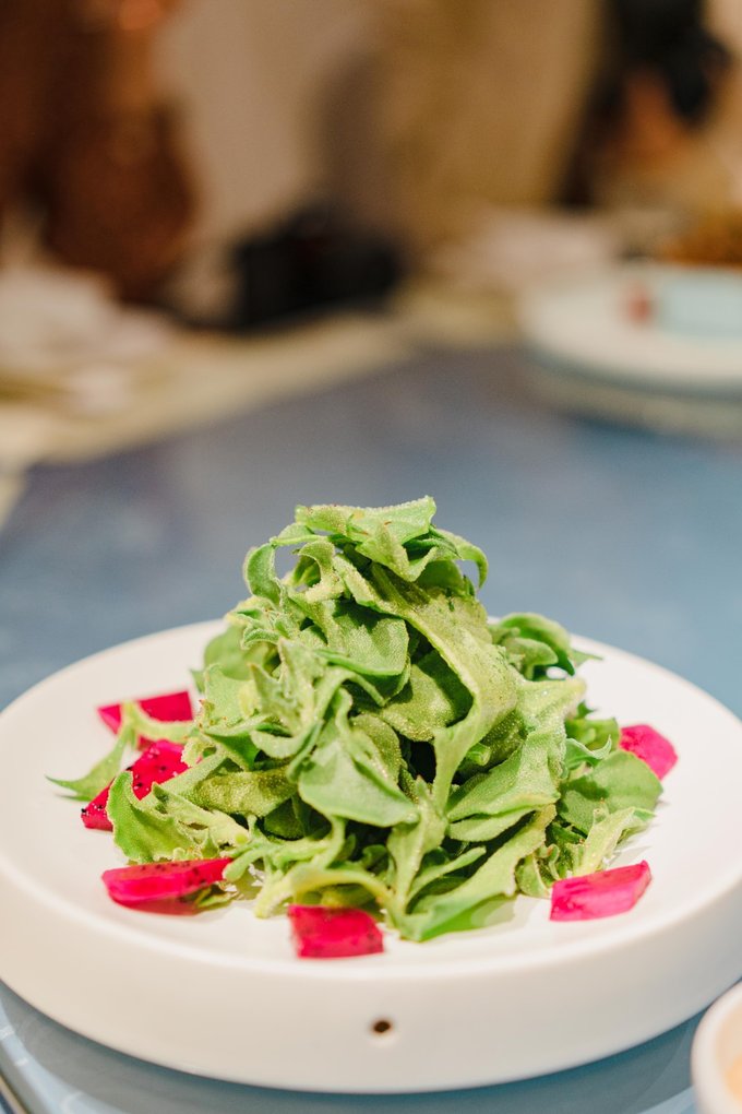 慈城旅行,印象颇深的是一蔬一饭间的讲究与精致。这家名叫“歇心界”的素食餐厅,二十四节气,每个节气更换一次菜单,“色、香、味、形、神”俱全,我们这次吃的新菜尚未取名... 除了外观和味觉上的享受,高端素食的妙处在于,拥有饱腹感的同时消化迅速,作为晚餐再合适不过了。