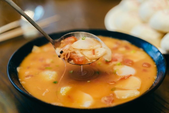 不把年糕尝个遍,就不算来过慈城。 慈城年糕是浙江地区著名的传统小吃,也是江南一绝,我们在这家年糕主题餐厅一吃就是好几顿,没办法,想吃的年糕口味实在太多了。 糖炒年糕、皮皮虾年糕、鳝鱼年糕、牛肉年糕、肥肠年糕……只有你没听过的,没有这家店做不出来的,连肥肠年糕这种听起来很“黑暗料理”的菜式也做得特别好吃,令人拍案叫绝。