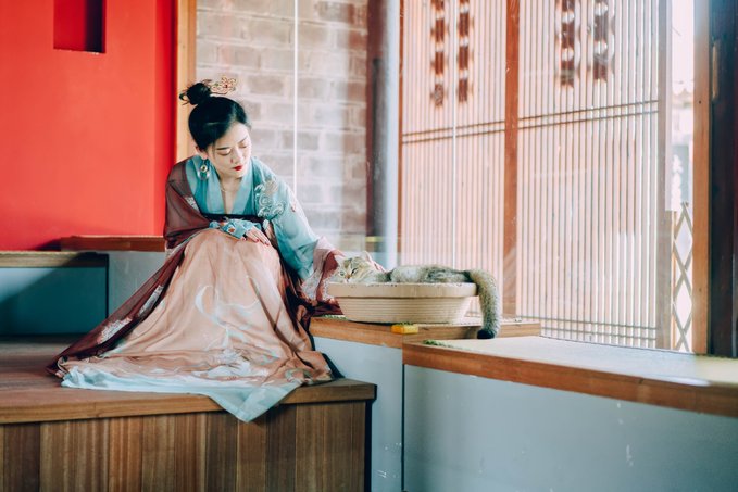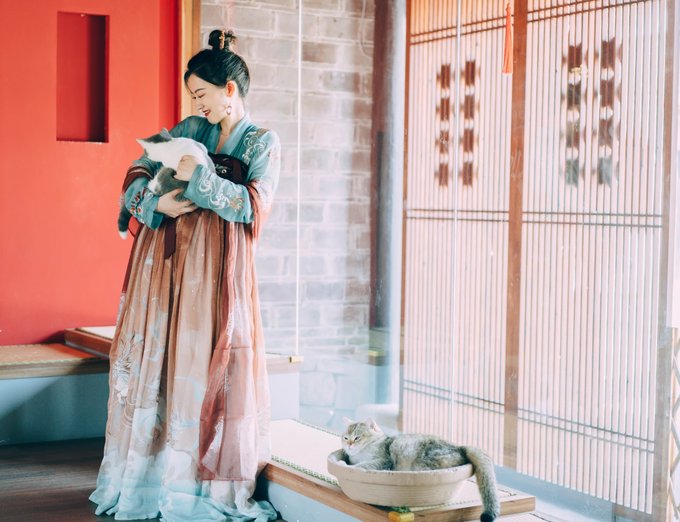 唐装、汉服、私服百无禁忌,只要记住,妆发很重要,合适的鞋子和配饰可以起到画龙点睛的作用。 这次的唐装是自带,汉服是在慈城一家叫宋庭国风生活空间的地方租的,他们这里也可以做妆发,还是一家民宿,只是房间没那么多,门口还有一间特色的撸猫房,本身就养猫的我简直不想走。