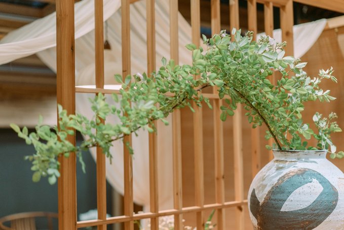 两天三夜的旅行,我住在慈城里院·十八花房,一家新开的高端民宿。 这是一所会呼吸的院子:四合院内、每个房间的独立小院内,安放着各种各样的植物花草:网红植物、各式各样的果树、各个季节的花草……