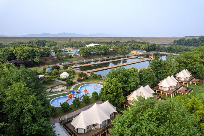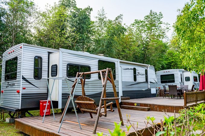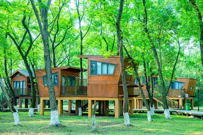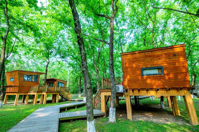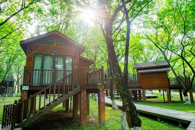 除了房车,里面还有浪漫童话主题树屋、香樟木屋、穹庐星座帐篷房、湖边别墅,以及亲子城堡等等可选,甚至还有4星标准的假日酒店。