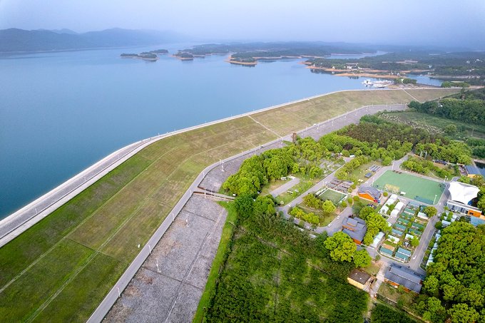 武汉到洈水,全程300公里,自驾车大概3个多小时,把车停在洈水汽车营地,然后从洈水大坝正式开启洈水之旅的序幕。 洈水大坝于1958年动工,1960年合龙,1970年全面竣工,全长8968米,分为主坝和副坝两部分,当年为了防洪、发电、灌溉等民生用途而人工修筑,如今不仅是亚洲第一大人工型土坝,也是一个国家4A级风景区。