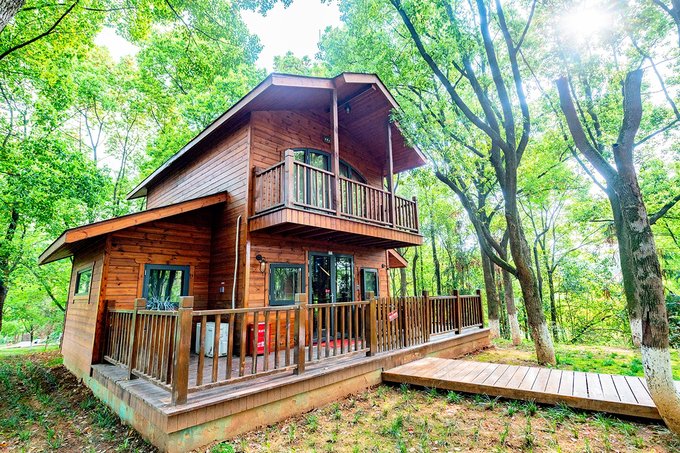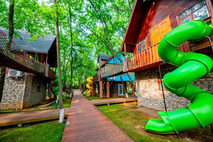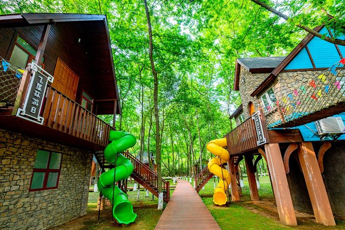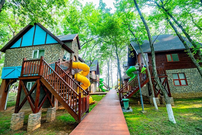 有的木屋还带有滑梯,这种就非常适合亲子,应该没有哪个小朋友能拒绝这样的童话城堡吧?