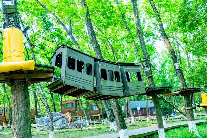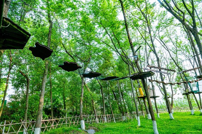 园区体验项目也很多,各种高低空探险,丛林野战乐园,亲子部落,充气城堡,越野摩托,游船射箭,高尔夫等等,各种季节还设有不同的采摘项目,夏天这里还能玩各种水上项目。