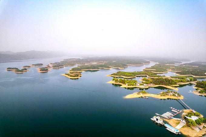 一路上,可以看镶嵌在湖心的数百个湖心岛,百岛画廊的名称绝不是徒有。
