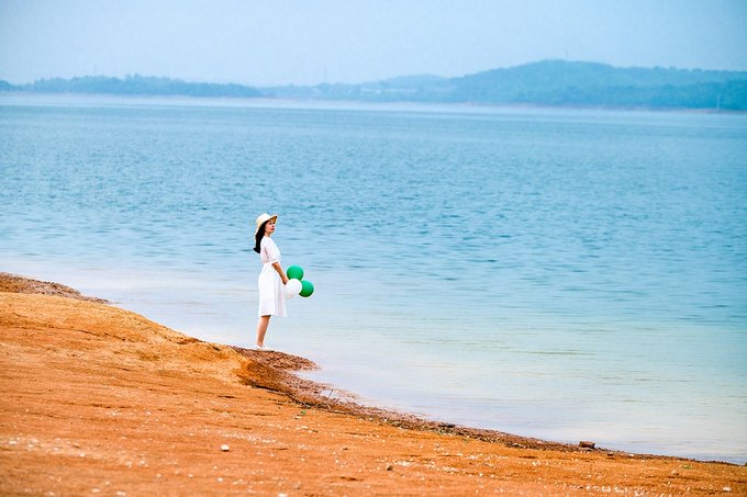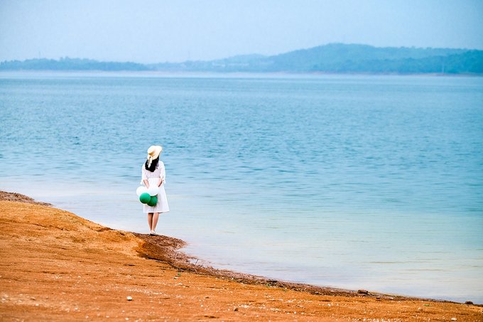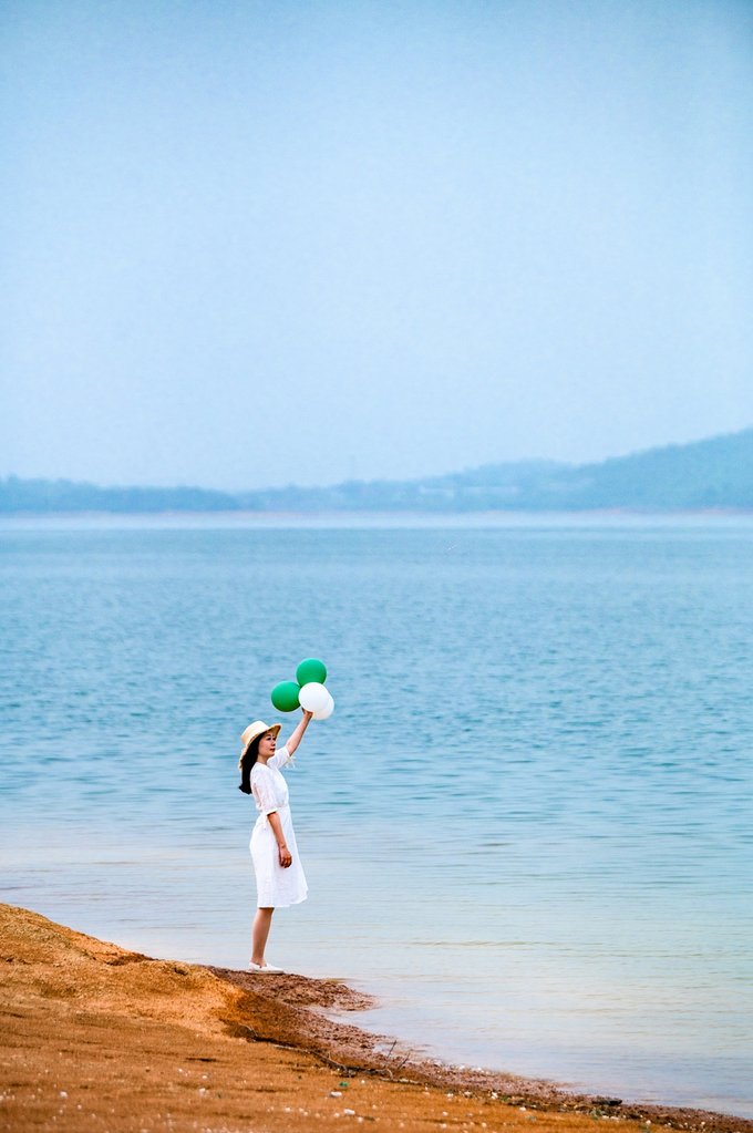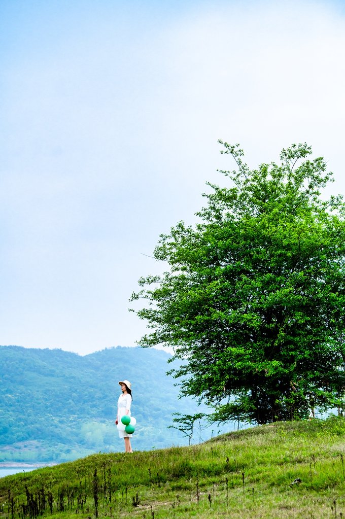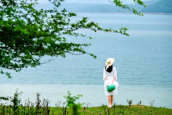 行走在大坝上,一侧是清澈的湖水,另一边是清新的绿。 这里,也是当地著名的网红打卡点。