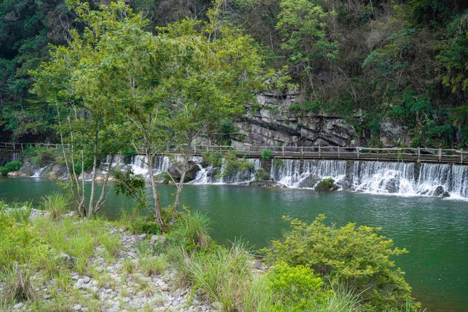 坐在小火车上,望着两旁不断向后的风景,这里的山水风光真的令人叹为观止。来到这里,可以近距离得感受到青山绿水的自然之美以及河流湖泊的宁静与恬淡,观赏国家森林公园参天的古树森林,碧绿的水潭,在蓝天白云的映衬下,这里就像是一副中国山水画。