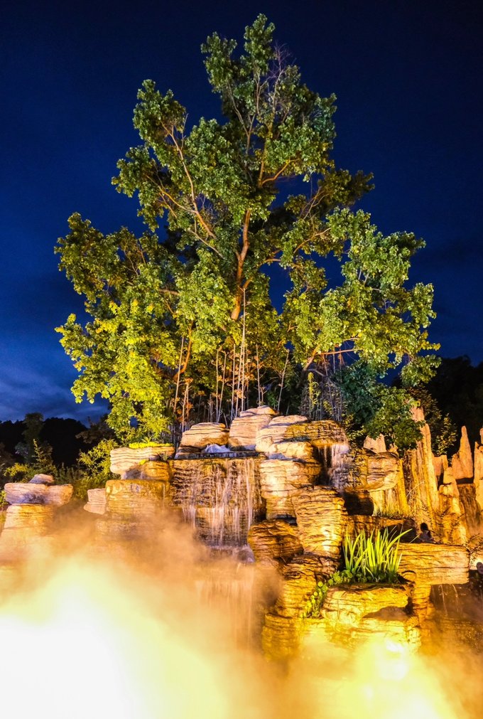 晚上震撼的灯光秀表演、夜游宽心奇妙集市、云水禅心水幕光影秀,各种国风美学,让人一时忘却了当下的烦恼…