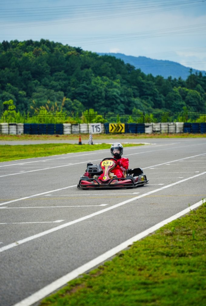 Tips: 1.戴好头盔,道路千万条,安全第一条,戴好头盔,就可以放心前行啦 2.人像打卡,来都来了,当然要拍两张打卡照啦!建议坐在卡丁车上,让朋友kaka两张,以及开完全程回来后,拿着头盔以赛车场为背景拍照,酷炫十足,成为大片的机率更高噢!