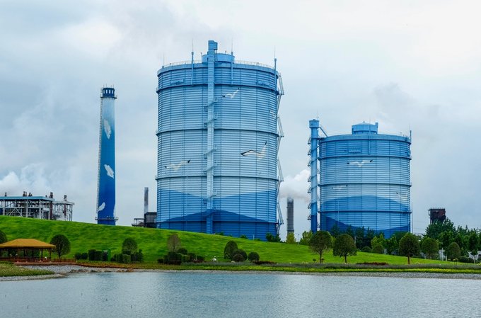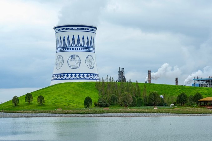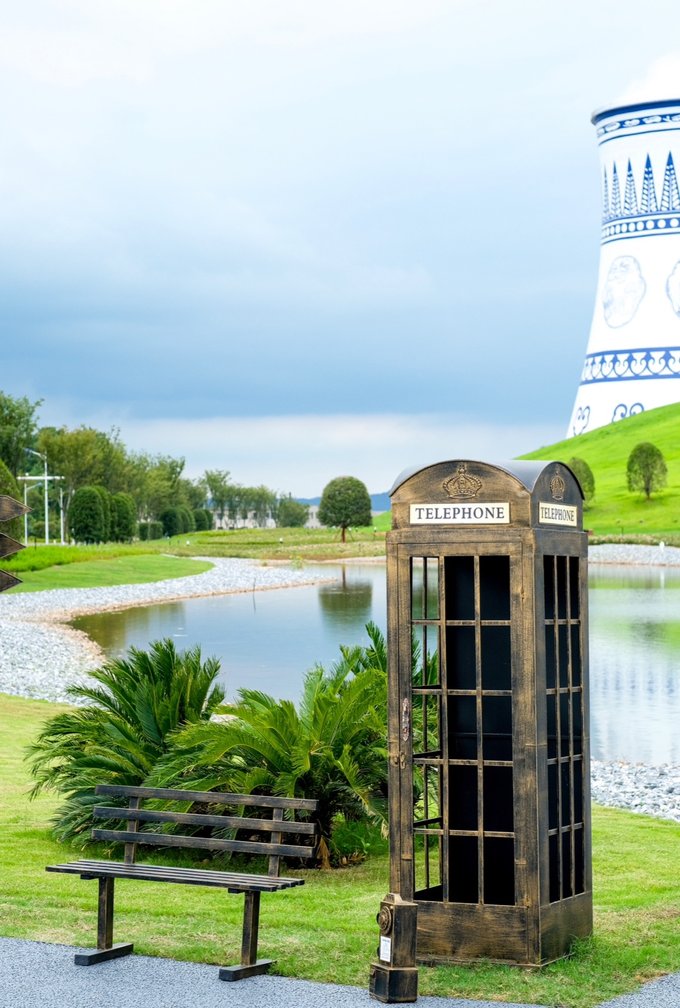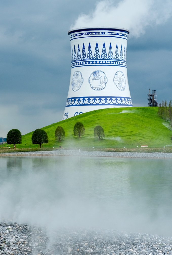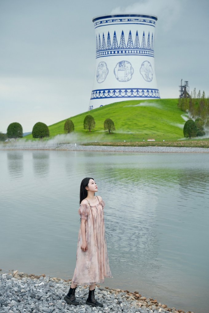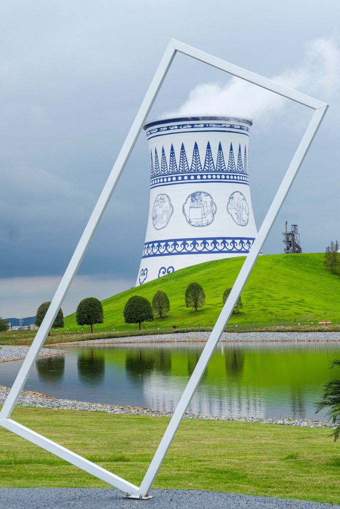 而且是免费状态噢,公园内的大烟卤被改造成青花瓷的样子,加上周围草坪、湖面的衬托,格外清新~爱拍照的小仙女们,一定不要错过来这儿打卡噢~