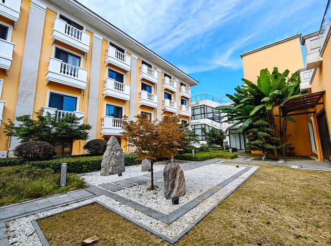 园区周围被绿树森林环绕,紧挨仙女湖 🧚♀️一眼望去均书苍翠绿意,带着治愈系的柔软色调,清风拂面时,能嗅到草木和泥土的气息,非常适合和家人朋友们来放松身心~