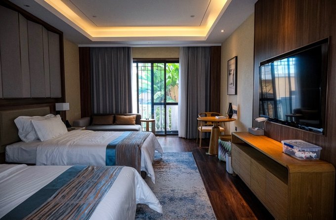 隽恒温泉度假酒店 晚上我们直接入住的是揽山湖旁的隽恒温泉度假酒店,度假氛围拉满!度假村内配套设施丰富,吃喝玩乐一应俱全,非常适合假期和家人朋友们来游玩居住。整个酒店设施都非常崭新,房间干净敞亮,距离仙女湖景区开车10分钟左右车程,十分便利。