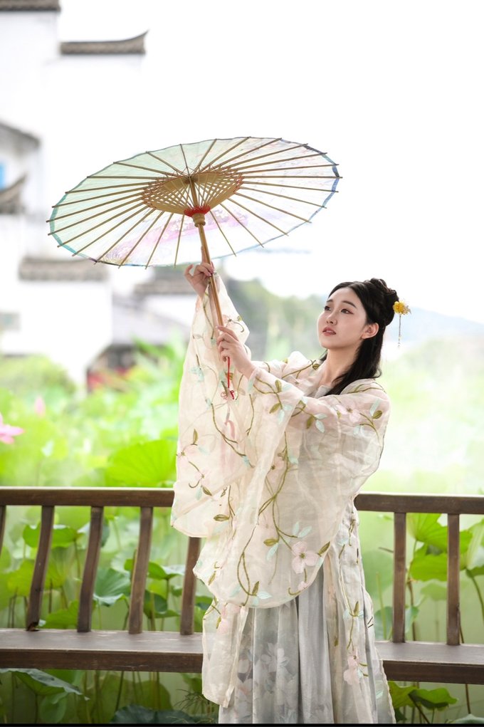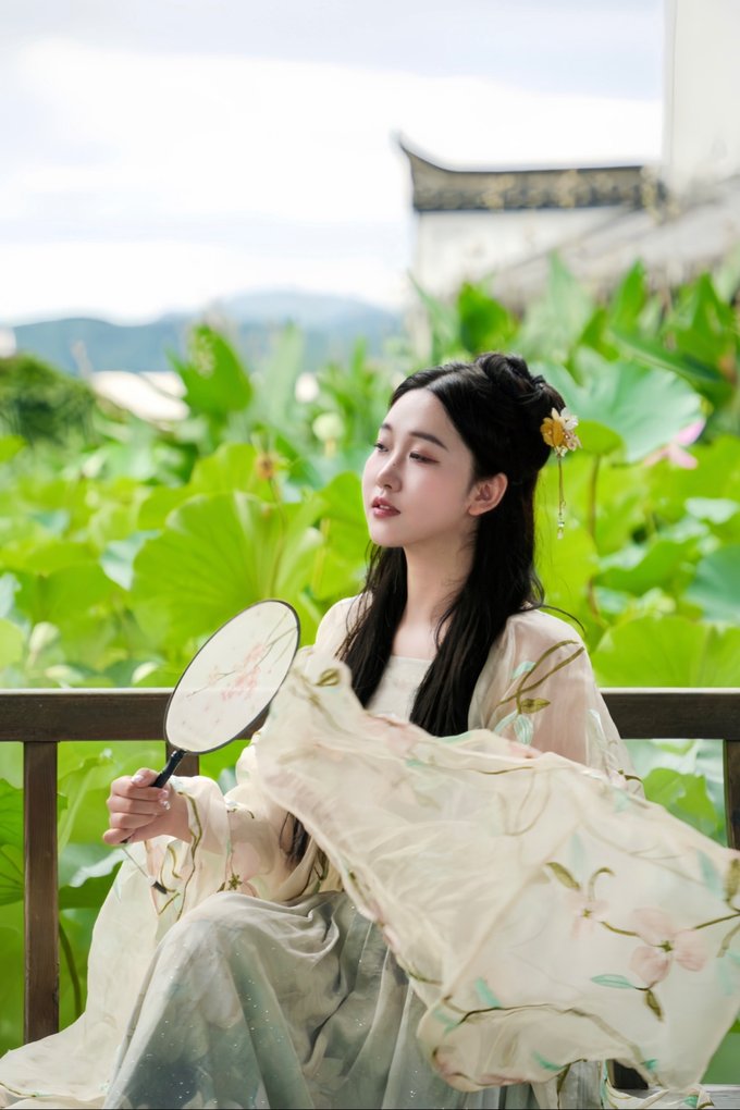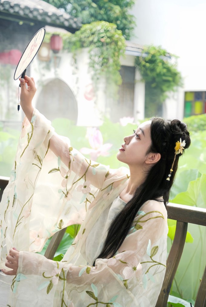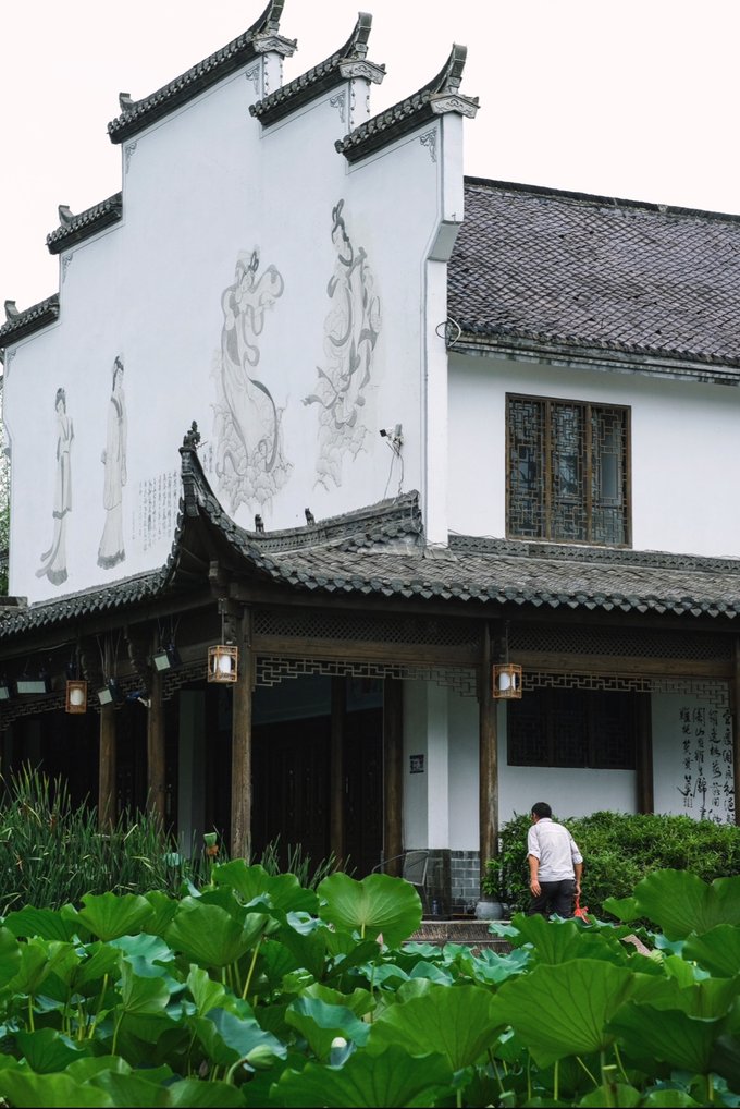 最近正值荷花盛开好时节,穿着汉服行走在七夕老街,走过鹊桥,彷佛自己便是故事里的七仙女般~抬头望去满眼都是绘画着七仙女爱情故事的壁画…