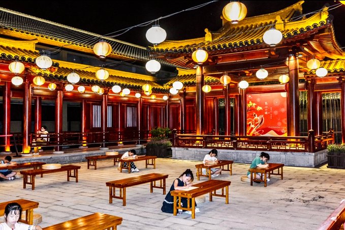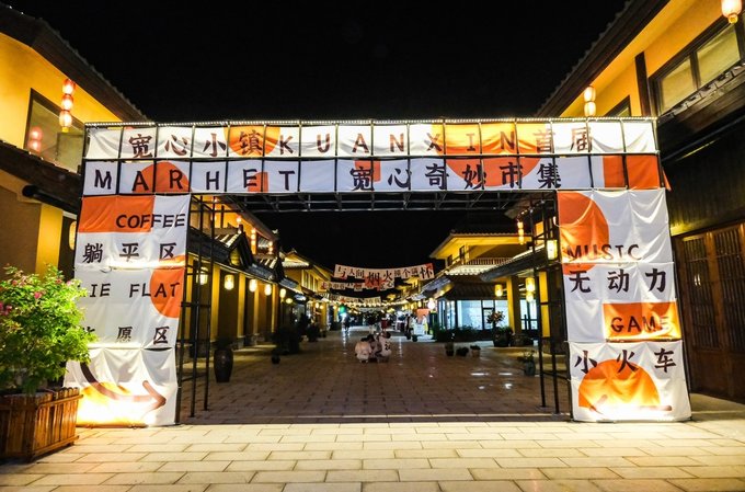 宽心小镇 夜游小镇,主打的就是一个宽心~整体是以唐风宋韵建筑风格为基调,行走在小镇里瞬间觉得一秒穿越到盛唐长安的feel~