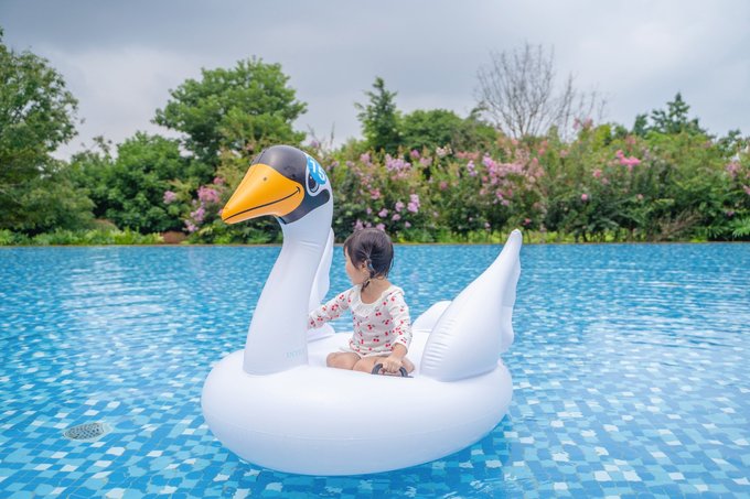 室外有个很浅的池子,小朋友可以在这里玩水枪。 租的大白鹅也终于可以好好拍照啦。