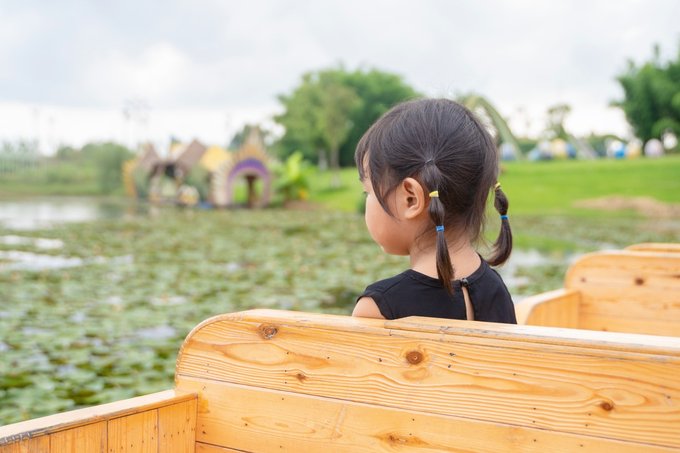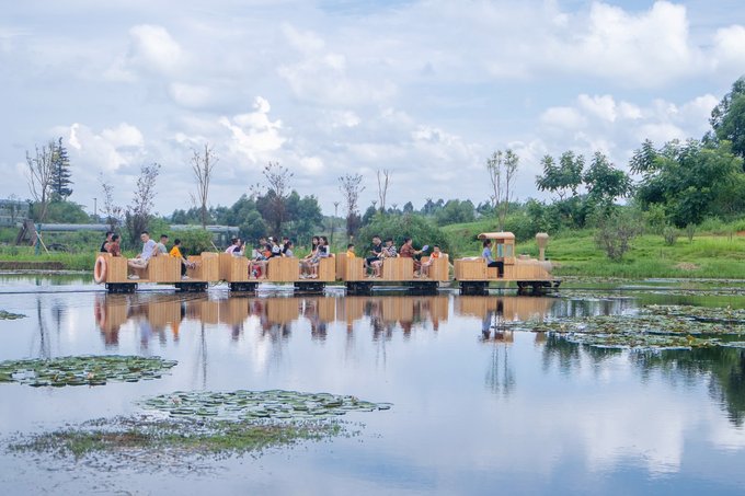我最喜欢的是环湖小火车,火车行驶在池塘水面上,上午来还能看到睡莲,场景打造的十分梦幻。