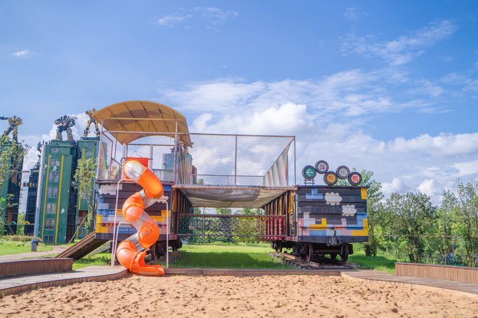 带娃还可以玩射箭、坑爹小火车、游船、挖沙、音乐喷泉、萌宠乐园等项目。 建议安排一整天的时间来游玩,因为项目真的挺多的。