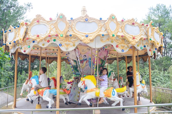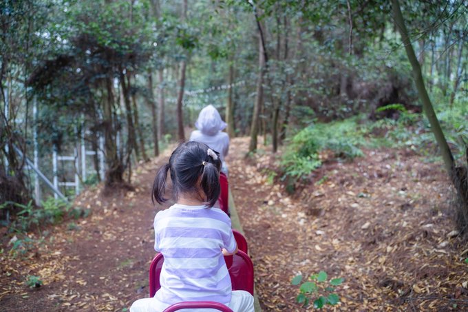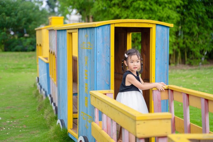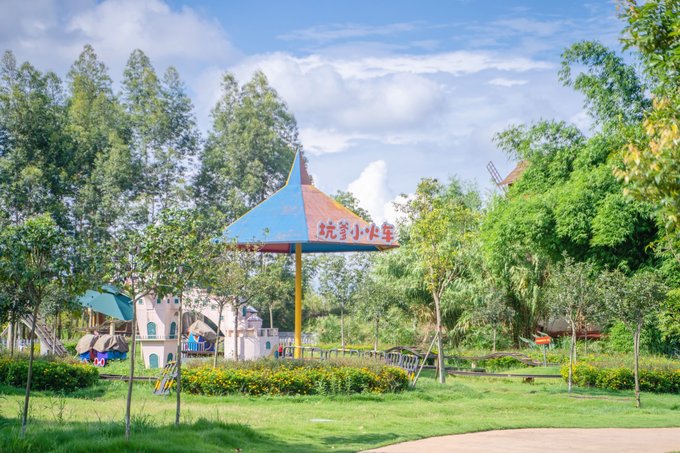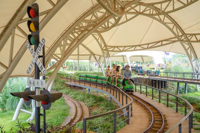 园区适合低龄小朋友的游乐设施也很多。 穿梭在林间的小火车,一直开往森林深里,很是梦幻。