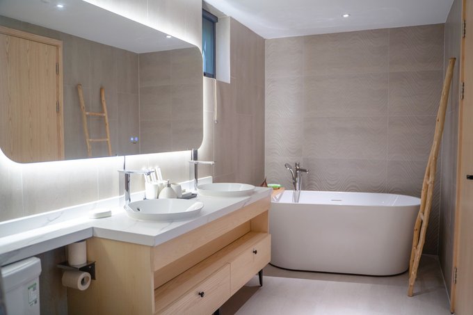 「华凌山庄·隐湖栖」 这次在黑龙滩旁还发现了一家宝藏民宿。 📍华凌山庄·隐湖栖 整个山庄临湖而建,座落在山间,环境十分幽静。 🏠现代的装修风格显得干净明亮,住宿是独栋的小别墅,我们几家人住一栋刚刚好。