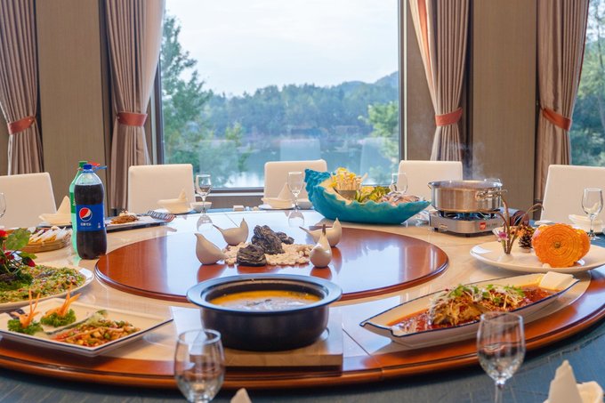 来仁寿怎能错过特色美食,这家民宿餐厅的全鱼宴很受好评。 包厢可以看到湖景,几家人聚餐来说空间足够。