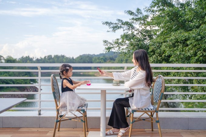 酒店有家临湖的咖啡厅,环境很赞,点上一杯咖啡,可以慢慢欣赏黑龙滩的风景。 最惬意的假期生活不过如此~