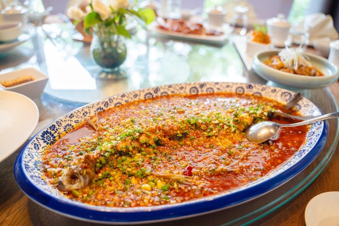 来黑龙滩就是要吃鱼呀,一次性点了好几种口味的鱼。 感觉这的鱼肉质要比平时买的嫩很多,据说黑龙滩的鱼每一条都是有编号的。