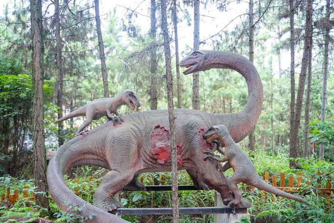 园区还有一个重返侏罗纪,有各种仿真的恐龙,还会发出声音。 朋友家的男孩子可太喜欢这个项设施了。