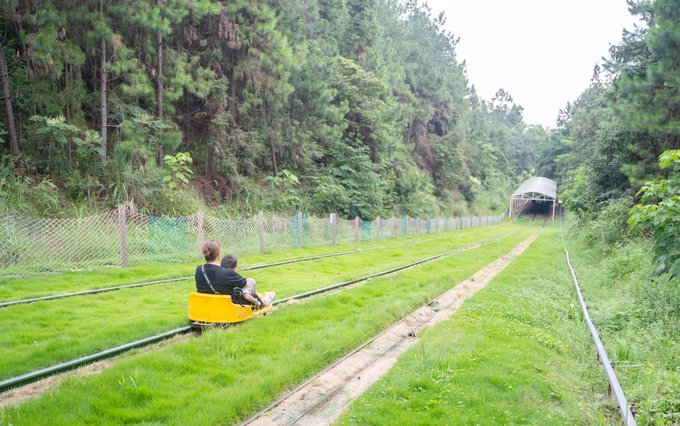 夏天来景区,一定要体验一次这个滑草。 大人和小孩可以一起乘坐,我家孩子最开始有点不敢,坐了一次后大呼不过瘾。