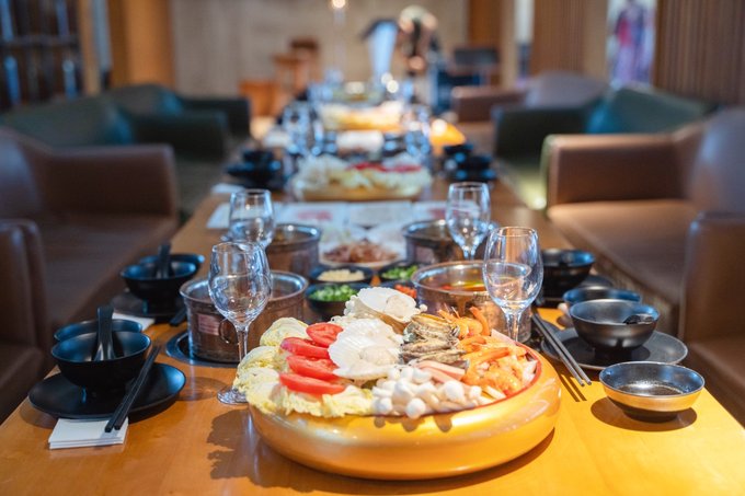 晚餐我们一群人在酒店吃了泰式火锅,口味很正。