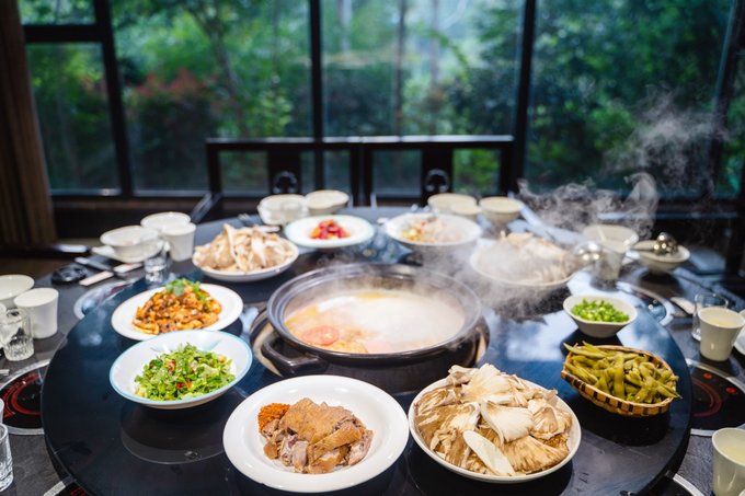 这家山庄环境很赞,除了吃斗鸡公火锅之外也有特色的中餐。 一到吃菌子的季节,很多外地人专门开车过来打卡。